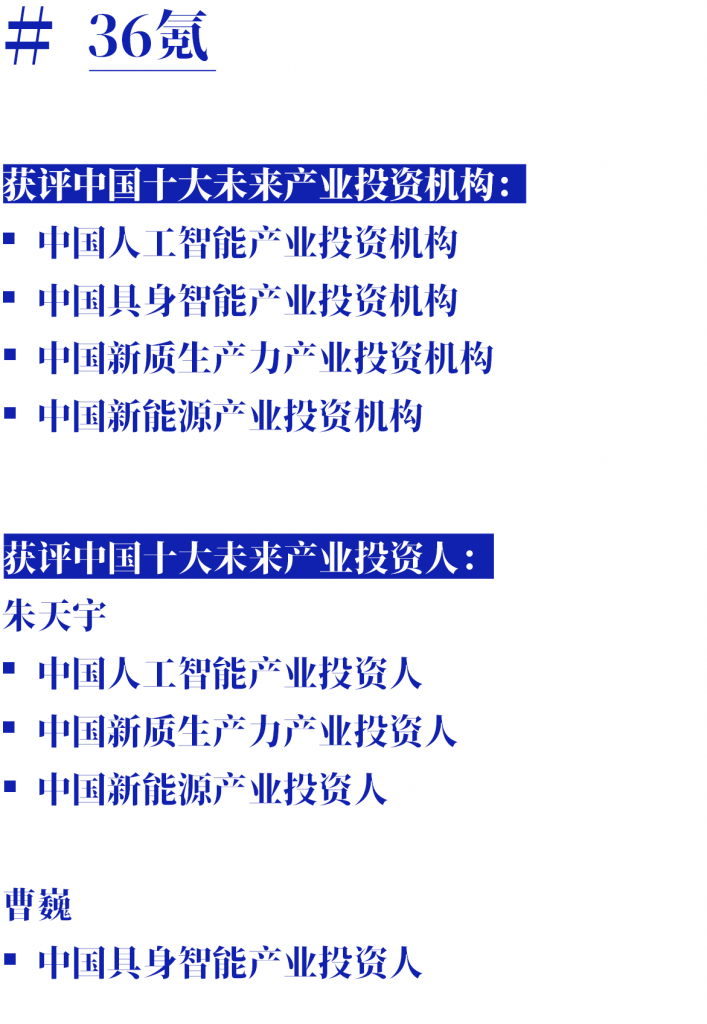 36氪创投研究院依托于自建系统,收集和调研投资机构的基金、项目、交易等多维度评估指标(包括机构整体管理规模、募集基金金额/数量,聚焦在某一具体产业的投资项目金额/数量、产业集中度、项目发展与融资表现、项目退出回报等),经过为期2个月的调研与评估,最终评选出2025年中国产业投资者年度名册。