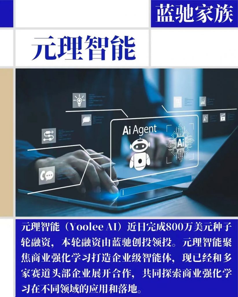 企业智能体公司元理智能(Yoolee AI)近日完成800万美元种子轮融资,由蓝驰创投领投,光源创业者基金跟投。